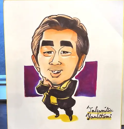 福岡県を拠点として九州地方を中心に活躍する男性似顔絵師を派遣しました。デザイン学校を卒業後、ショッピングモールやイベントなどでたくさんの方の笑顔を描いてきました。特徴を捉えたデフォルメタッチの作風で、男性らしい力強い筆使いから可愛らしいタッチまでこなします。世界大会やテレビ番組にも多数出演するほどの腕前を持ち、根強いファンがいる人気似顔絵師です。