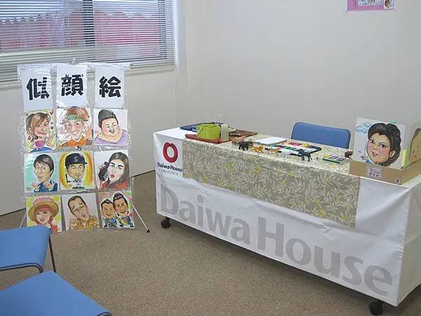 住宅メーカーの営業所内に似顔絵プレゼントコーナーを設置!in山口県下関市