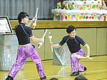 今回のショーではボール、ディアボロ(中国ゴマ)、クラブを使ったジャグリングを披露しました。桔梗ブラザーズの見事なコンビネーション、そしてのどの道具でも世界トップレベルのパフォーマンスとあって、児童達は大きな歓声を上げて見入っていました。興奮のあまり立ち上がってしまう児童もいたほどでした。特にクラブを使ったジャグリングパフォーマンスでは世界大会で披露した時と同じ構成のものをご覧いただきいたのですが、手拍子が起こるなど今回のショーの中で特に盛り上がりました。最後にはアンコールもいただくことができ、桔梗ブラザーズの華麗なジャグリングの数々を余すことなく堪能してもらいました。