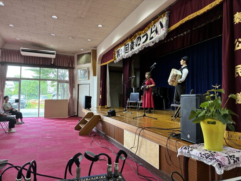 大阪府寝屋川市の自治会で老人会の敬老イベントが行われるということで、「461モンブラン」に出演してほしいとのことでお問い合わせいただきました。1年半ほど前にある催しで2人の演奏を聴き感動を覚えたそうで、是非ご自身が任されている敬老イベントで461モンブランを呼んで皆さんに喜んでいただきたい!と思われたそうです。