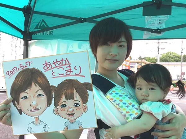 親子似顔絵プレゼント企画を実施する保険会社に似顔絵師を派遣!in和歌山県和歌山市、御坊市