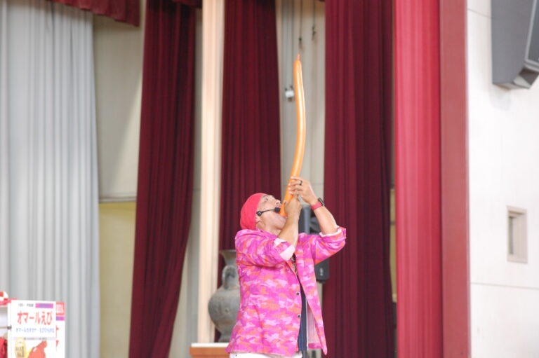 今回派遣した大道芸人は、どちらも中部在住の大道芸人です。元ダンサーという変わった肩書を持つ元気いっぱい女性バルーンパフォーマー「ASUKA」と、コミカルでパワフルな熱いパフォーマンスが得意な男性パフォーマー「オマールえび」。この対象的な2人が選ばれた理由としては、幼児から中学生まで男女が大勢参加する中で、どのお子様にもこのポイントが楽しかったとそれぞれ感じて帰ってもらえたらという役員の方たちの思いがありました。