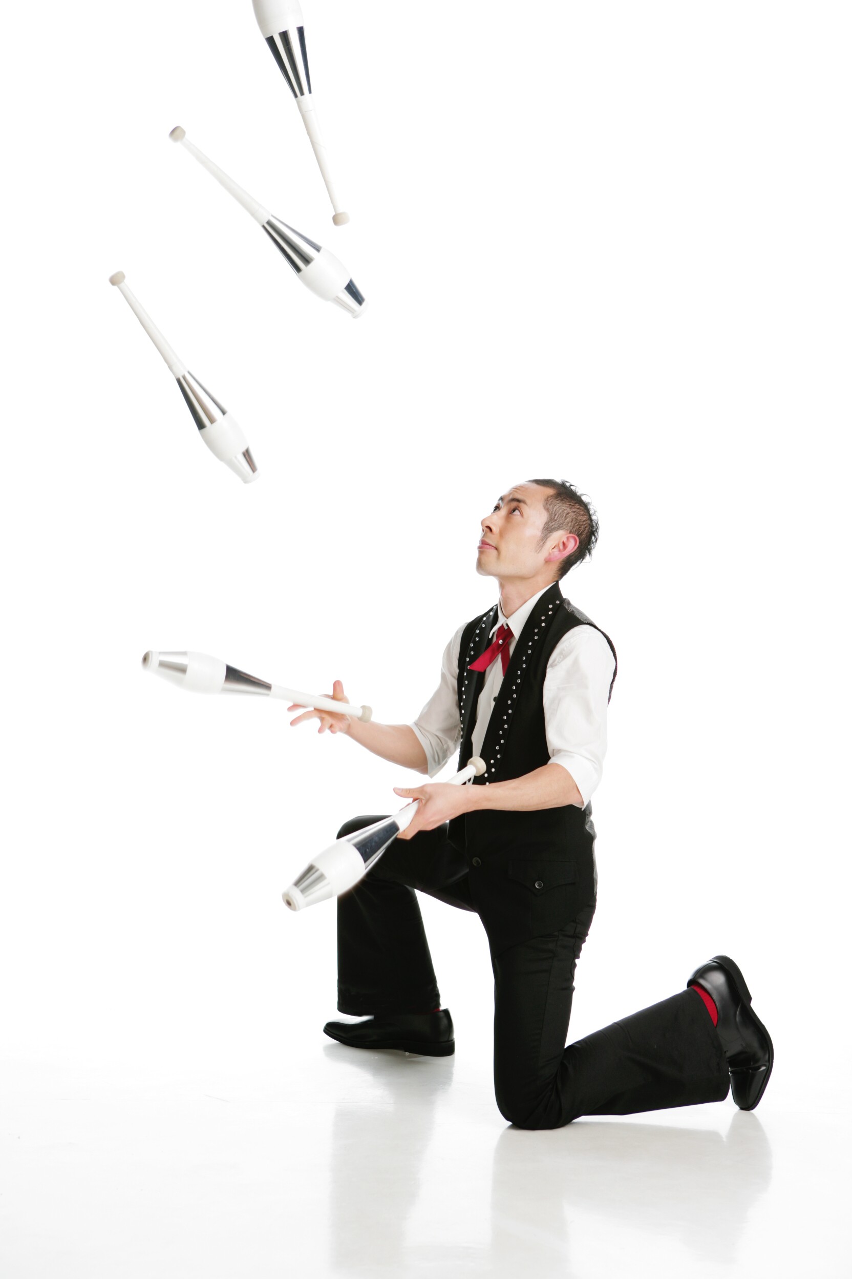 スタイリッシュな雰囲気と楽しいトークと爽やかな笑顔。そして、次々と繰り出される日本トップクラスのハイレベルなジャグリングで皆様に驚きと感動をお届けします。大道芸から舞台公演、ジャグリング講師まで幅広く活躍中!